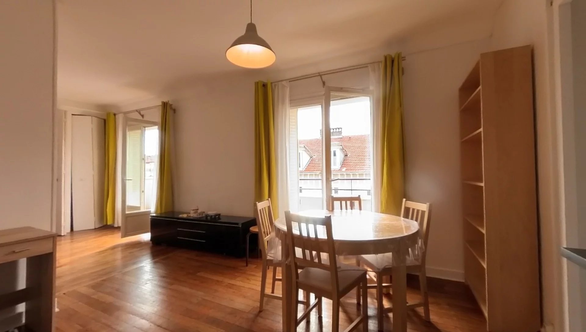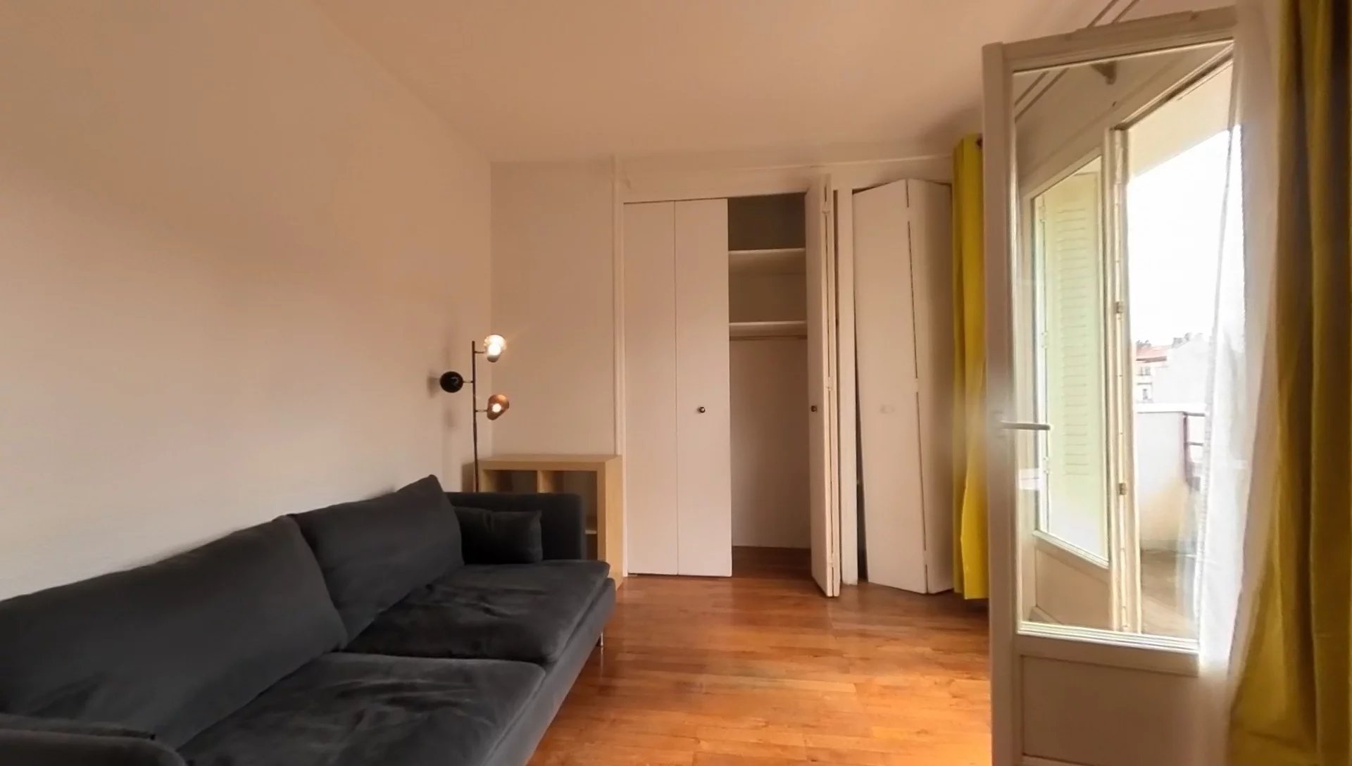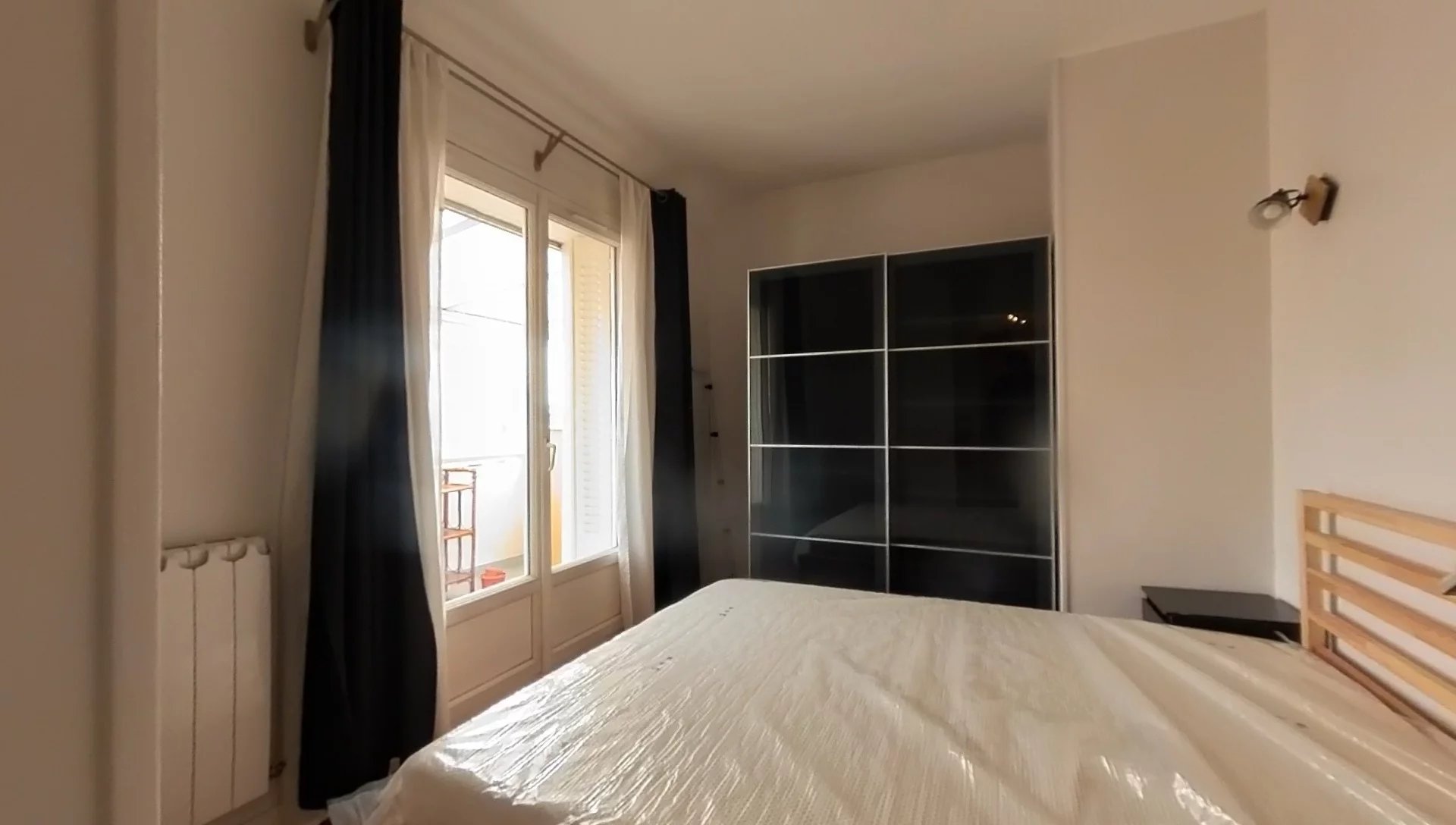 Pièce de vie avec cuisine ouverte sur séjour. grand balcon filant au sud. 1 chambre indépendante. WC et salle de bain.