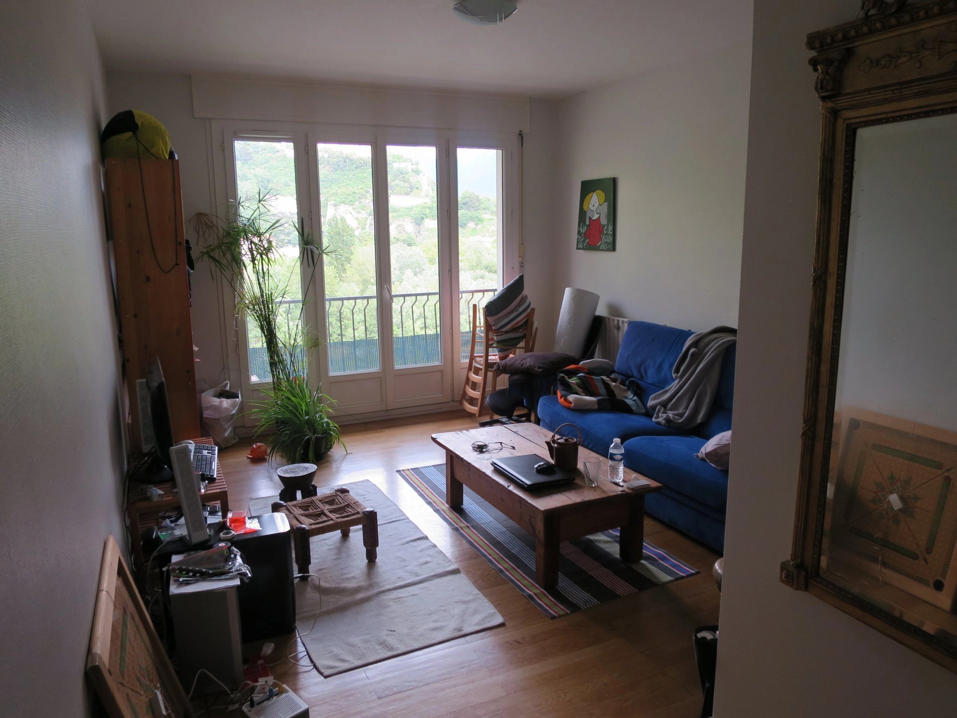 21 quai de la graille, proche gare, 45m² traversant en étage avec vue panoramique, très bon état, huisseries PVC, 2 balcons, chauffage et eau froide collectifs, parking collectif,